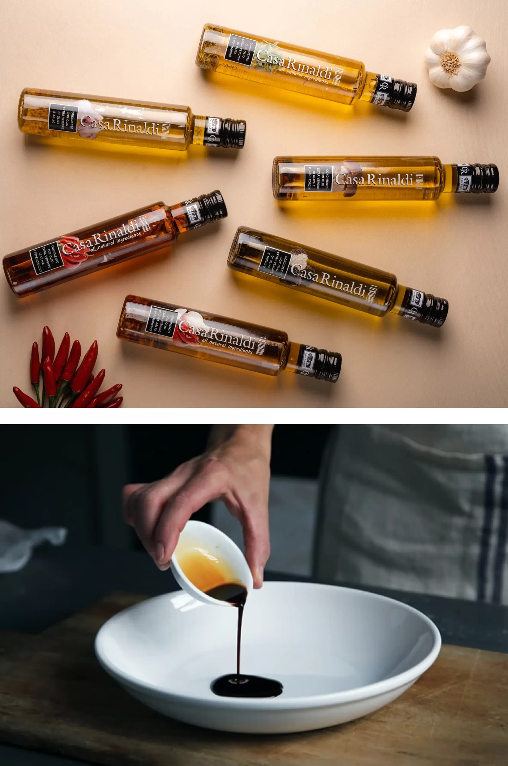 Casa Rinaldi offers a wide range of oils, balsamic vinegars, creams, organic condiments, pesto, canned food, pasta, rice, cheeses and cured meats. An all-round offer meeting the needs different consumer in different markets.
