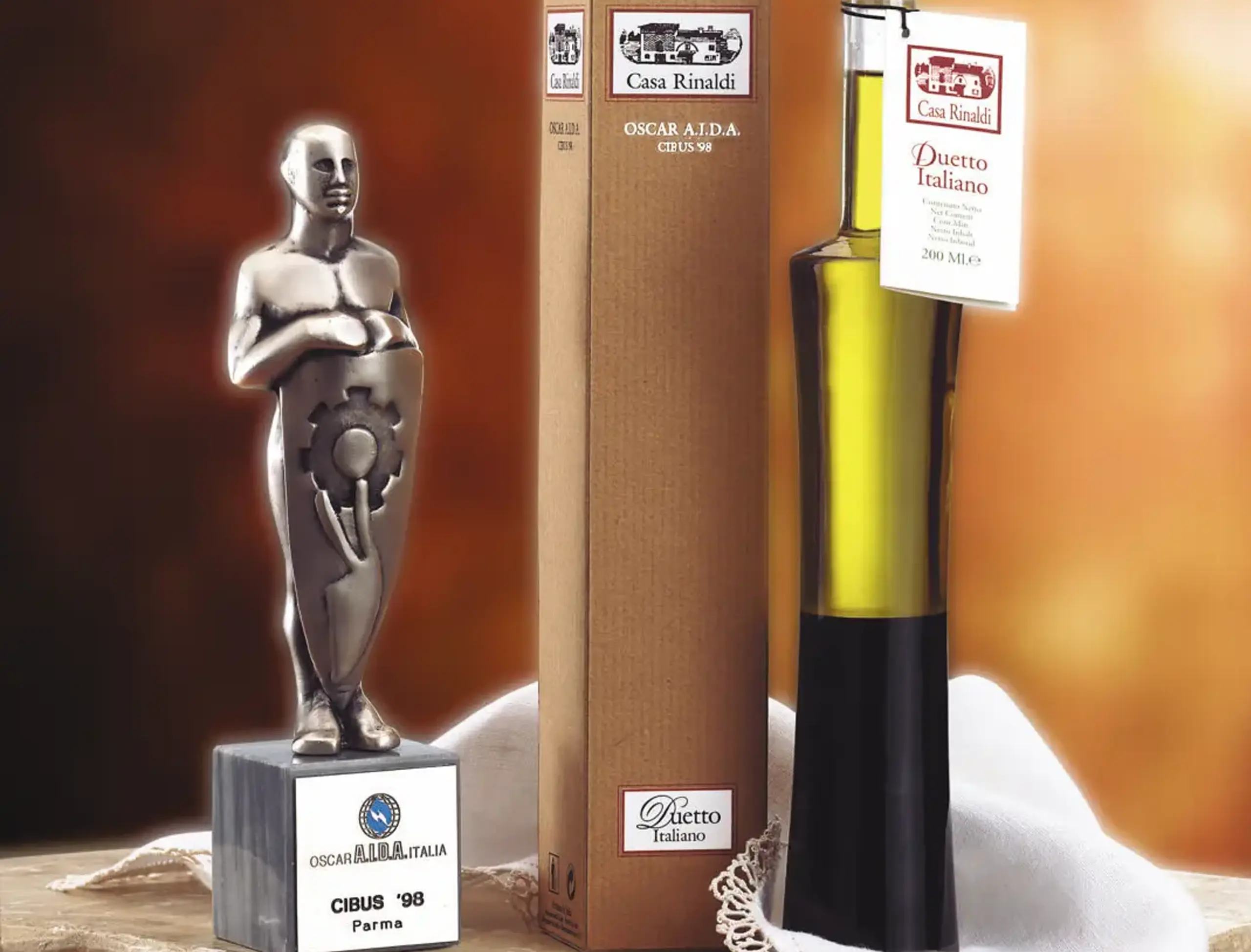 Casa Rinaldi launches on the market a unique product, “Duetto”, putting together PGI balsamic vinegar of Modena and extra virgin olive oil in a box with a fascinating and efficient design. Duetto is soon welcomed very warmly by industry insiders and consumers alike – also winning an award for creativity and appeal during the Cibus exhibition.