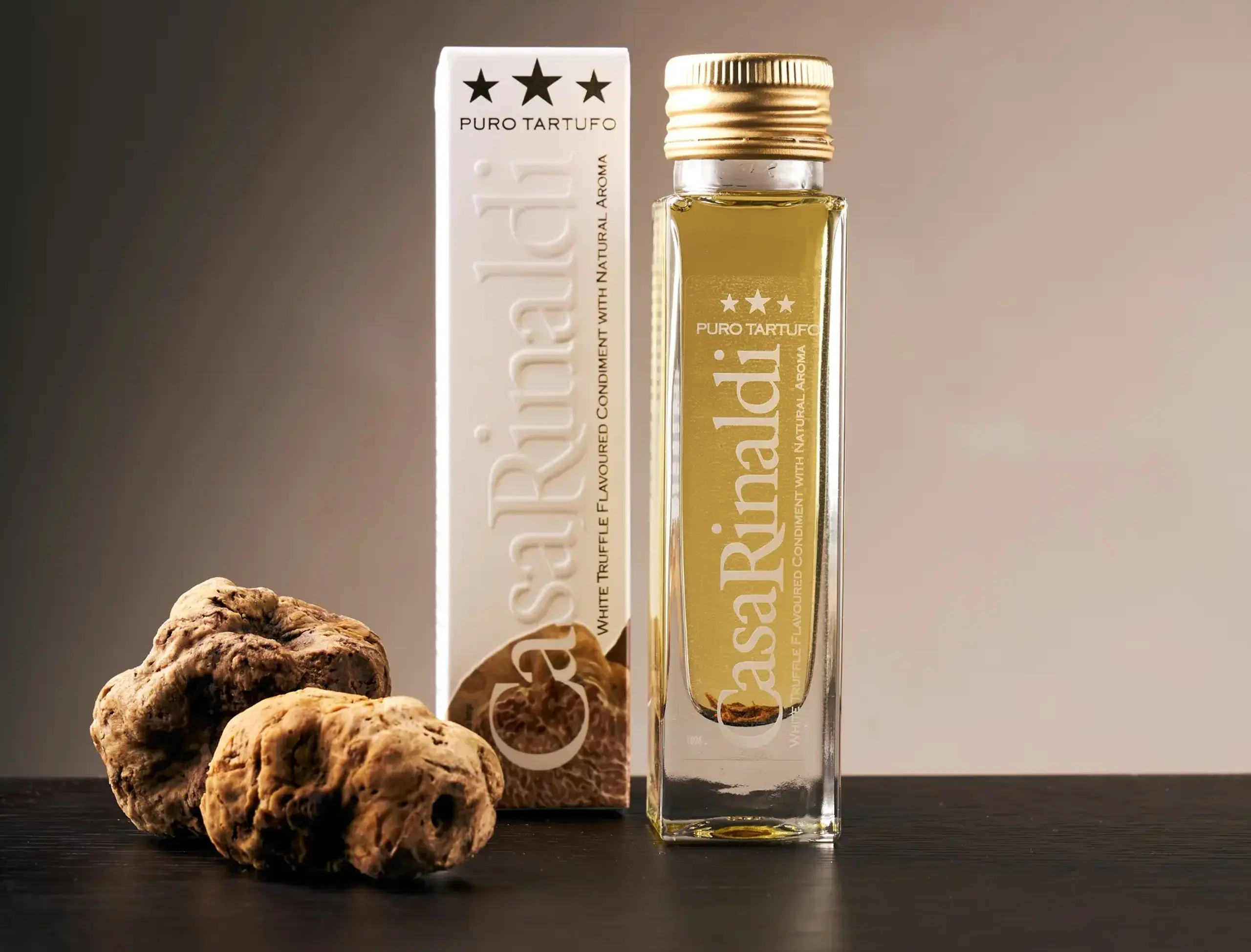 In occasion of Cibus 2022 Awards, Casa Rinaldi won the first prize for “Best Packaging for Condiments” and ranked among the finalists for “Best Product Innovation” with the new White Truffle Olive Oil with Natural Aroma. A new Oil with a unique and unmistakable scent and an elegant and intense flavour. A product that represents an evolution and innovation in the sector, obtained by using exclusively natural aromas. This oil joins other three products in our Puro Tartufo Line: the Carpaccio, the Ground Truffle Sauce and the Whole Truffle.